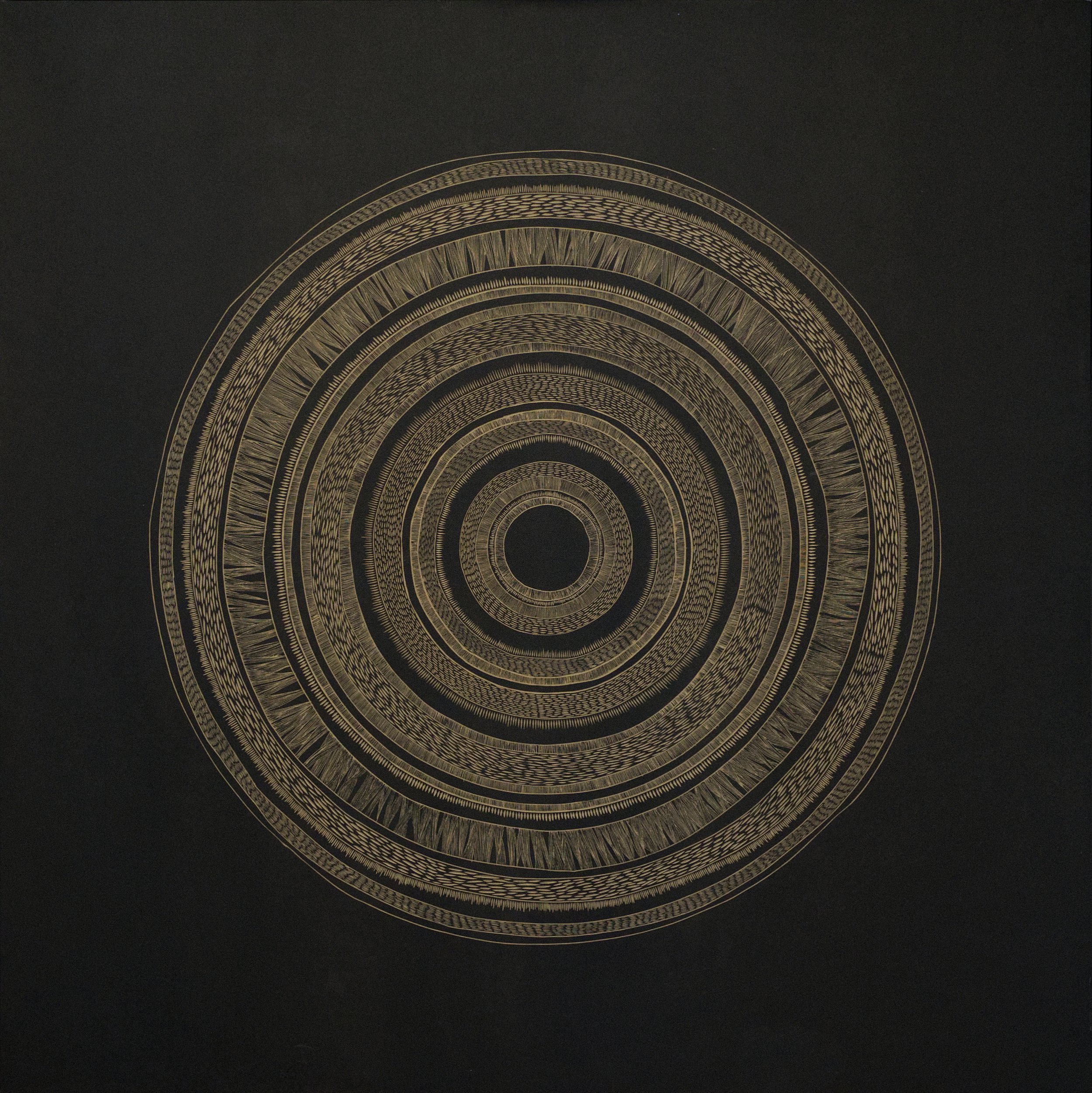 Portal to another dimension, May 2023 52 x 52 cm with frame. Woodcut on MDF with Sumi Ink. 500 euros