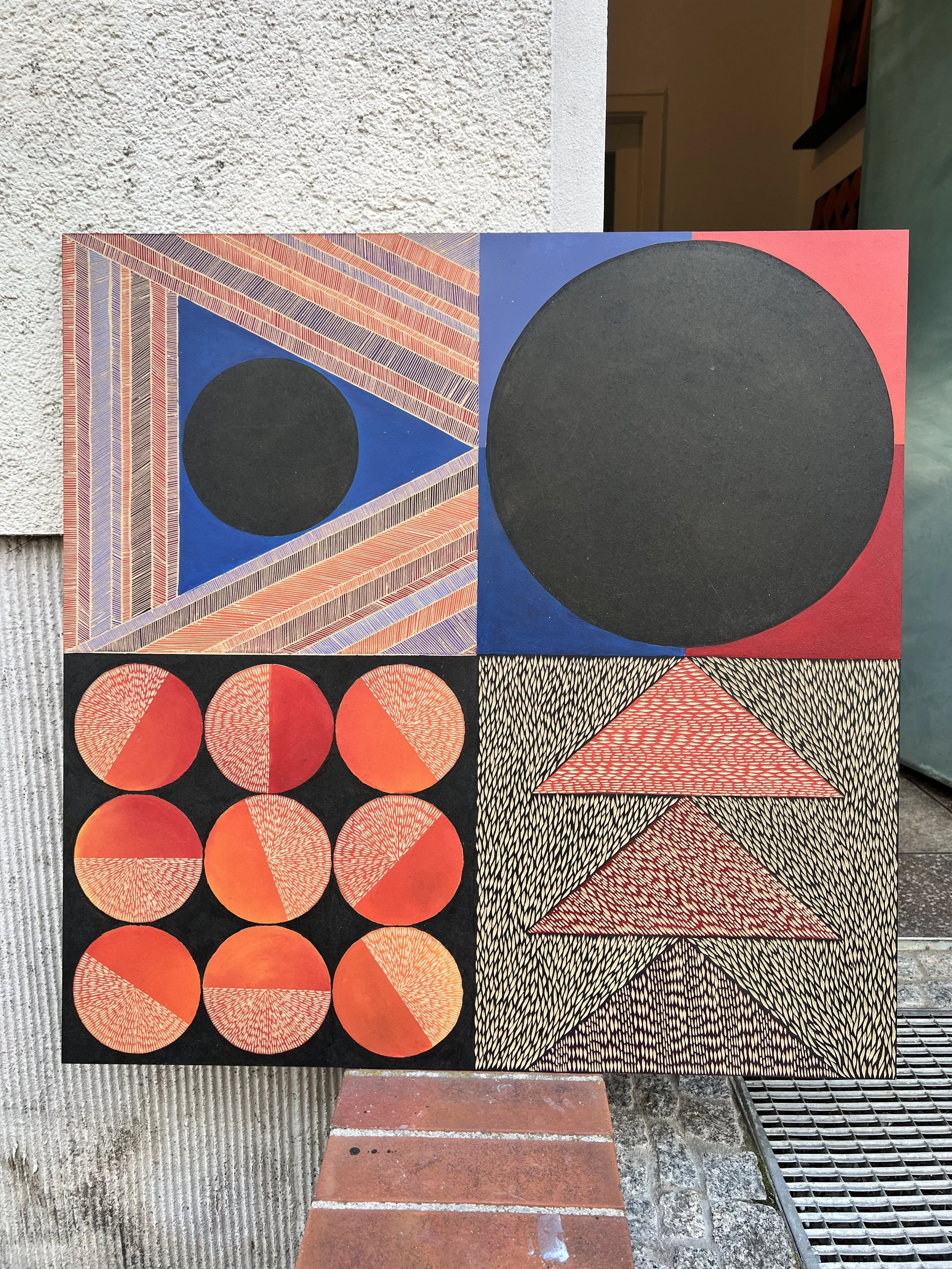 This collection began as an ode to the late Indian artist, S.H Raza. His mastery of geometric abstraction has inspired my work immensely. The carving adds my personal touch to this inspiration source, enhancing textures and creating movement. The playfulness of the colours, the structure of the shapes, and the energy source of the “Bindu” are all elements I bring in.
